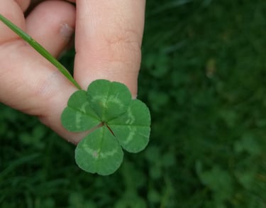 Parfois, au détour d’une balade, la nature m’offre un trèfle à quatre feuilles. Je le cueille à la main, et certains pots en accueillent un… selon la chance du moment. Une petite surprise pour les plus chanceux.